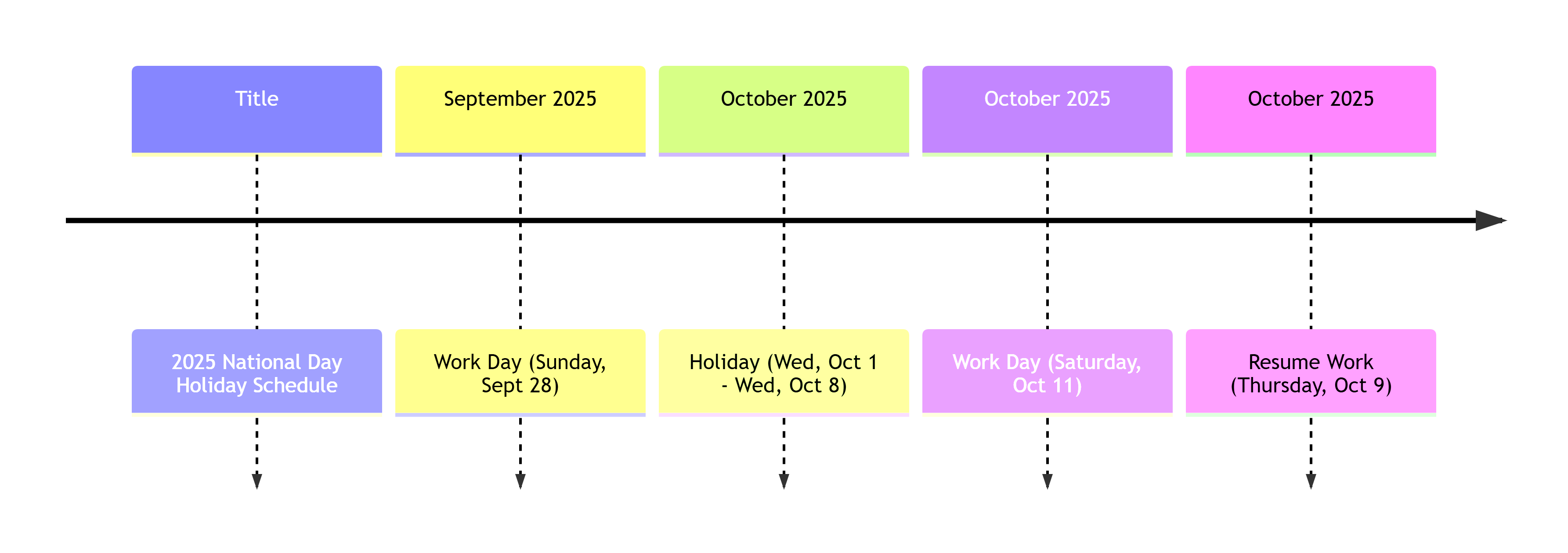 O cronograma abaixo descreve as principais datas relacionadas ao período de feriados:图表代码ℹ️ Acordos operacionaisDurante o feriado, nosso escritório estará fechado e não haverá ninguém disponível para receber chamadas ou processar consultas padrão. Para quaisquer assuntos urgentes que exijam atenção imediata, entre em contato diretamente com o representante designado por telefone celular ou e-mail. Faremos o nosso melhor para resolver problemas críticos prontamente.